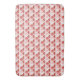 This pattern features a modern twist on an arabesque pattern with curving lines and a blend of coral, pink, and red colours.