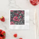 Raspberry, burgundy flowers on dark gray napkin
