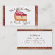 Cheesecake with raspberries, pink violets or flowers with fancy scroll borders on this business card for a bakery or home baking biz for weddings, birthdays and other events.