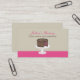 A simple business card featuring an illustration of a chocolate layer cake with raspberry filling on a white cake stand. Text is brown and pink. Customise the front with business name and short description. Personalise the brown text on back with your name, job title, and contact information.