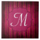 Raspberry Gold Stripe Modern Monogram Display Tile
