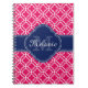Raspberry Pink Wht Moroccan Pattern Navy Monogram Spiral Notebook