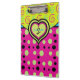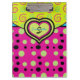 Personalise this fbright bold patterned clipboard in raspberry pink and lime dots and swirls with your name and monogram. Text is formatted and all ready for you edit in the easy Zazzle editor. See coordinating notebook also available. Created in part with graphics from resaleclipart.com, and playtimeworld.com and Trina Clark of DigiscrapKits at www.digiscrapkits.com