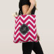 Raspberry Red Chevron Stripes with Monogram Tote Bag