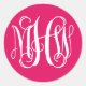 Raspberry White Preppy Vine Script Monogram DIY BG Classic Round Sticker
