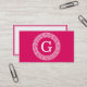 Raspberry Wht Greek Key Rnd Frame Initial Monogram Business Card