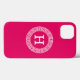 Raspberry Wht Greek Key Rnd Frame Initial Monogram Case-Mate iPhone Case
