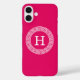 Raspberry Wht Greek Key Rnd Frame Initial Monogram Case-Mate iPhone Case
