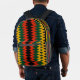 The Rasta Colours Chevron Design features the key colours red, golden yellow, and green in sharp zig-zaggy chevron stripes on a black background. A unique look you won't find anywhere else. When this design is added to a backpack, it is the height of cool, functional Boho fashion. Great for a high school or college student.