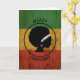 This design features the silhouette of an African woman in a gold circle with "Peace & Love" printed on her headband on a distressed Rasta flag background with "Merry Christmas" in black font.