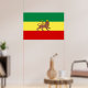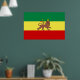 This design features the flag of the Rastafari movement, which is a religion that developed in Jamaica during the 1930s. There is no central authority in control of the movement and a great deal of diversity exists among practitioners, who are known as Rastafari, Rastafarians or simply Rastas. Rasta beliefs are based on a specific interpretation of the Bible: a monotheistic belief in a single God, referred to as Jah, who partially resides within each individual, is central. Rastafaris accord Haile Selassie, the Emperor of Ethiopia between 1930 and 1974, central importance in their movement; indeed, many regard him as the Second Coming of Jesus and Jah incarnate, whereas others see him as a human prophet who fully recognised the inner divinity in every individual.