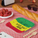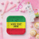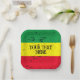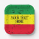 Rastafari flag reggae theme custom paper plates. Custom disposable party supplies with Rasta flag and your distressed text. Vintage typography template. Fun for Birthday party, BBQ, celebrations, wedding and more. Personalised table decor.