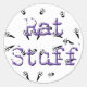A sticker with 'Rat Stuff' in purple & a rat paw print background.