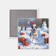 Rat Terrier Running in Snow with Christmas Hat Magnet