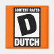This unique design is inspired by the video game rating system. Let everyone around you know you are rated D because you're a Dutch! This is a cute gift idea especially for fans of video games - or maybe those for whom video games are a pet peeve!