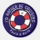 I'd rather be cruising! Funny cruise ship cabin door magnet with a ship's lifebelt graphic and quote. The names are customisable so you can add your own names or message