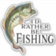 Largemouth bass jumping with mouth open. Text says "I'd rather be fishing".