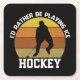 Hockey player design coaster with a silhouette hockey player and text that reads I'd Rather Be Playing Ice Hockey!