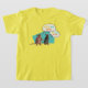 The t-shirt feels and looks great quality, a good thick cotton. It will be a little big for my son, but that means he will be able to wear it and not out grow it too soon. The print was as described on the order when personalised. True size, shape and colour T-shirt- thanks.