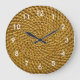 Rattan Wicker Look Boho Monogram Basketweave Large Clock