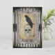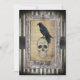 A dark gothic Halloween image featuring a skull, a raven, placed in a vintage frame on a back ground of black and white stripes dressed with a grunge texture. © WickedlyLovely
