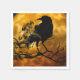 Features a perched black raven in a swirl of black fog set against a large orange harvest moon. Nice for any fall ocassion.