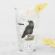 A Raven perched on stone at the Tower of London adorns this customisable glass!