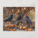 Raven Halloween with Pumpkins and Candles Holiday Postcard