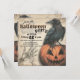 Stark raven on a jack o lantern with antiqued torn paper backing and a skeleton hand adorn the front of this customisable Halloween party invitation. Faded Celtic cross appears in the background. A spooky look for a great haunted party! The reverse of this Halloween party invitation features the same illustration but flipped. Enjoy your festivities!