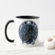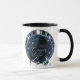 Tribal raven sitting in a circle of stars and moon phases all drawn in an art nouveau style in a backdrop of blues and purple