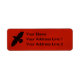 A simple, black silhouette of a Raven (Corvus corax) on a red, leather-look background image. The raven image has been given a slight "rough" or "worn" effect. Add your your name and address.
