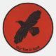 A simple, black silhouette of a Raven (Corvus corax) on a red background. The raven image has been given a slight "rough" or "worn" effect. Add your own text.