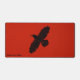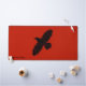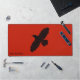 A simple, black silhouette of a Raven (Corvus corax) on a red background. The raven image has been given a slight "rough" or "worn" effect. Add your own text.