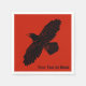 A simple, black silhouette of a Raven (Corvus corax) on a red background. The raven image has been given a slight "rough" or "worn" effect. Add your own text.