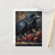 This postcard features a gothic-style oil painting of a black raven surrounded by deep red roses. Each brushstroke evokes dramatic depth, with moody lighting and dark romantic tones that create a sense of mystery and allure. The feathered detail and vivid crimson blooms make this postcard a perfect gift for lovers of gothic aesthetics, macabre beauty, Edgar Allan Poe-inspired decor, and dark florals.
