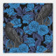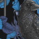 Hand-painted pattern design with raven perching on a metal fence with a key on a ribbon in its bills and red roses