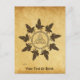 Nine lively ravens (Corvus corax) circle around a knotted Norse/Celtic ring. A triquetra, a triangular figure of three interlaced arcs, appears at centre. Everything is superimposed on an old paper background image, giving it a mediaeval feel. Customise by adding your own text.