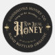 This honey label has editable fields to comply with the requirements listed by the National Honey Board in the US; the word honey, your business name, address, and net weight of honey in grams and ounces must be included if you sell your honey. Stylised honeybees act as bullet points on sides of label. Common honey net weight conversions: 8oz (227g), 12oz (340g), 16oz (454g), 32oz (907g), 5lb (2.27kg).