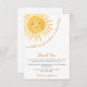 This cute gender-neutral baby shower thank you card features a smiling yellow watercolor sun and stylish typography. Easily customisable. Original Watercolor © Michele Davies.
