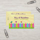 Professional and cute business card featuring colourful fence planks, an adorable bird sitting on the fence and two butterflies. Background is sun with rays. An ideal business card for a nursery, childcare centre, caregiver, children services, book illustrators, and is suitable for so many more business services and personal uses. Easy to customise, just replace the provided text with your desired information.