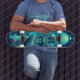 The "Raygun Gothic Underwater Research Facility Deck" is a skateboard deck graphic that illustrates the fusion of oceanic research and futuristic design in the Raygun Gothic world. The design depicts an advanced underwater research facility, a complex of domed structures and interconnected tunnels with large windows offering views of marine life. The facility showcases cutting-edge technology and research equipment, all styled in the Raygun Gothic aesthetic with futuristic and aquatic elements. Set in a vibrant underwater environment, the scene is alive with diverse sea creatures and bioluminescent flora, conveying a sense of exploration and discovery. Scientists are engaged in marine studies, adding to the atmosphere of intellectual adventure. The colour palette includes deep sea blues, aquamarine greens, and metallic silvers, perfectly capturing the essence of underwater exploration in this unique style.