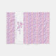 Personalised R monogram name and meaning children's blanket. Pretty hand drawn initial letter R monogram name and meaning girls blanket in purple, pink, pale yellow and white. Ideal for a personalised gift for a girl who has a name that starts with the letter R. This example reads Rayne A harmonious mighty counsellor and helpful friend or you can customise the text with your own name and message or words. Makes a unique girls, birthday or celebration gift. If you need help with your own personalised name please contact me. © Typographic letter R flowers and hearts hand drawing and pattern uniquely created by Sarah Trett. www.sarahtrett.com for www.mylittleeden.com