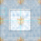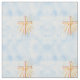 * Yellow and Pink Rays Shining off a Religious Cross, with pale blue sky and clouds background. *