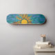 Bold retro color palette. Warm yellow, yellow orange, red orange, turquoise, and teal. Original drawing by artist KG Nowak. Sun rising.