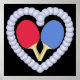 Love ping pong? Say so! Red and blue Ping Pong paddles nestled in a heart of ping pong balls. I Love Ping Pong!