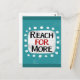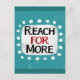"Reach For More" is a cute inspirational or motivational quote with a white accent shape surrounded by white textured whimsical dots.