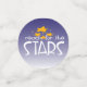 Make your birthday party or a festive event shine with personalised decor. Custom quote in cartoon font "reach the stars" with stars illustrations on ombre blue and white background coupled with your monogram in serif font