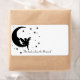 A silhouette of a fairy sitting on the moon, surrounded by stars.