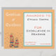 A bright colourful Reading Award Certificate suitable for use by a teacher for a school classroom or school assembly presentation. This orange certificate features a cute illustration of children with library books and is able to be personalised to include student's name and personal achievement. Date and teacher's name also can be personalised. Simple and easy to fill out online. Good teacher's resource.