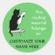 This modern self-adhesive bookplate features a vintage illustration of a black cat reading.